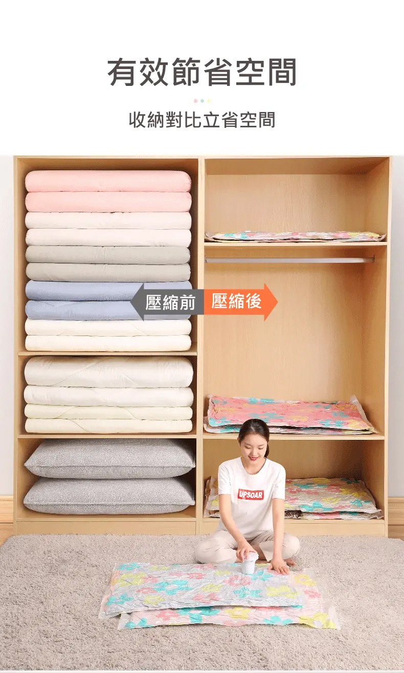 7分鐘前掛式真空壓縮袋推薦,輕鬆節省衣櫃空間 - 【買3送3】尺寸任選★贈電動抽氣機★ NT$999