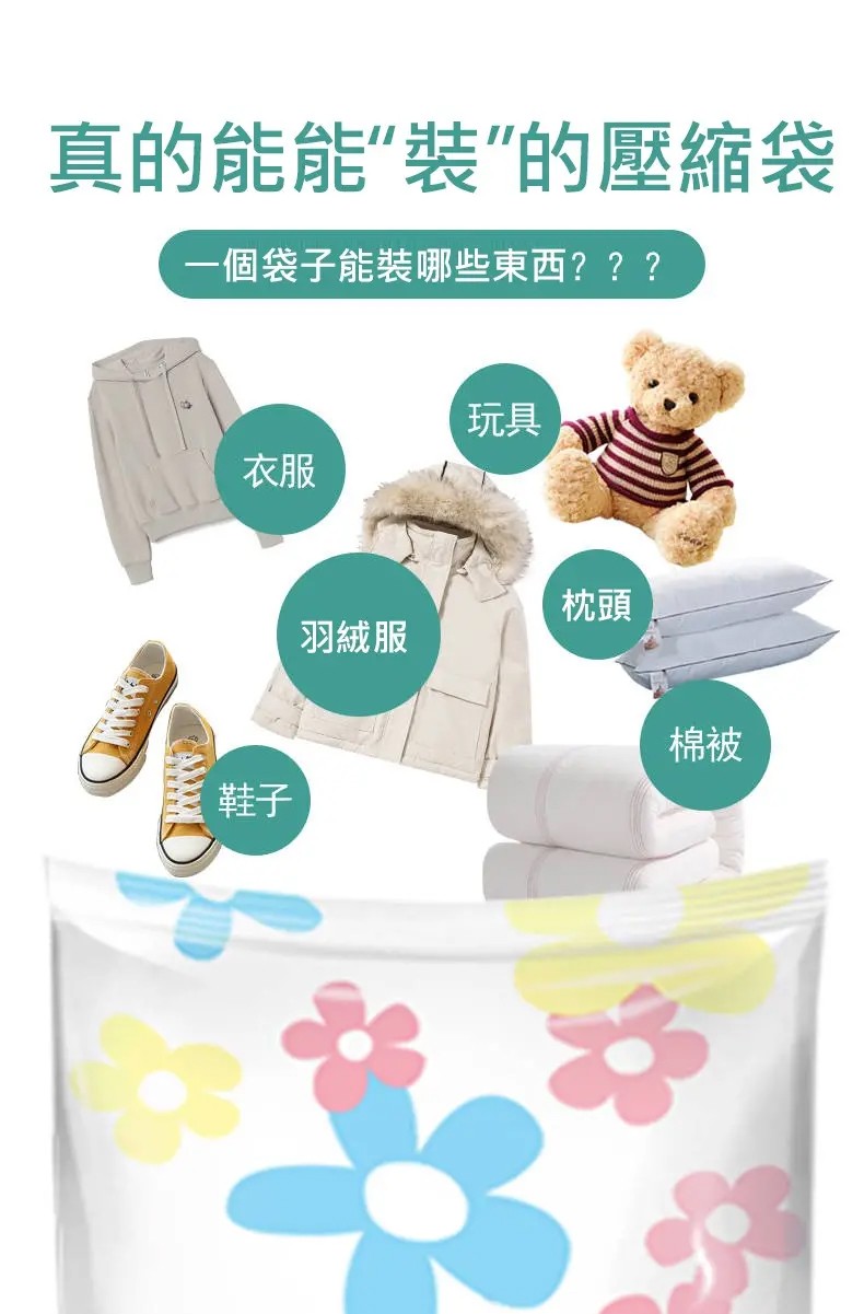 7分鐘前掛式真空壓縮袋推薦,輕鬆節省衣櫃空間 - 【買5送5】尺寸任選★贈電動抽氣機★ NT$1299