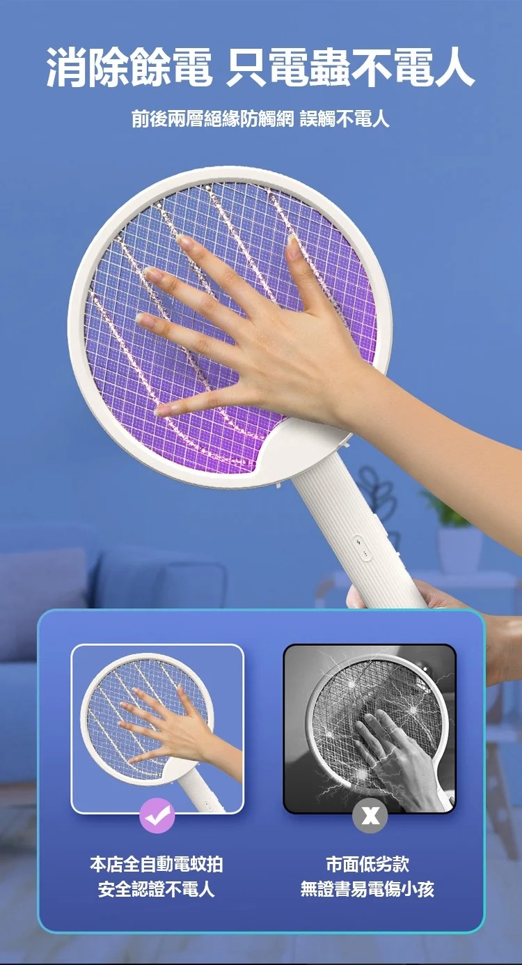 25分鐘前熱賣 四合一多功能電蚊滅蚊拍,立式/壁挂/手持式/可摺叠,雙效自動滅蚊! - 【超值特惠】2入組-NT$1190